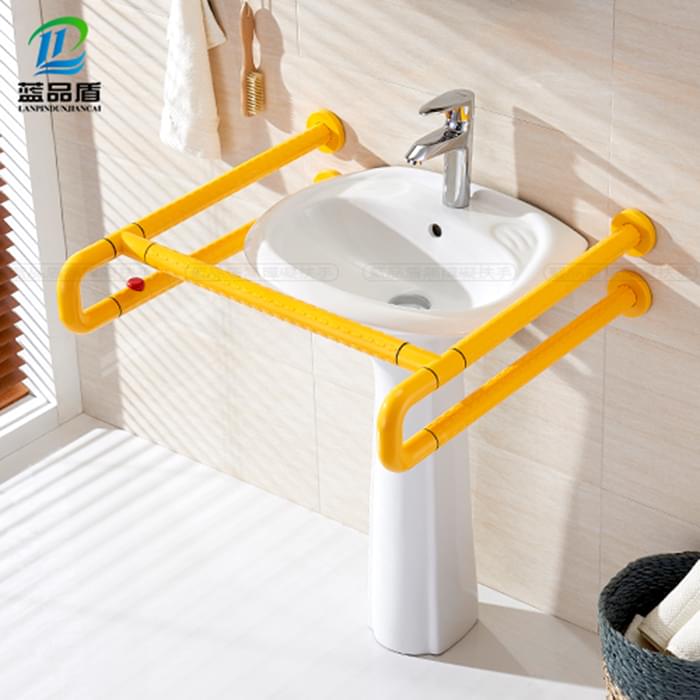 洗手盆扶手)現在許多醫院、景區、公廁、酒店、公寓、月子中心都安裝了洗手盆扶手,藍品盾生產的洗手盆扶手系列產品也得到了廣泛應用,公司生產的扶手外層采用抗菌尼龍PVC材質,內襯采用304不銹鋼,表面還有防滑凸點,手感舒適,四季常溫。